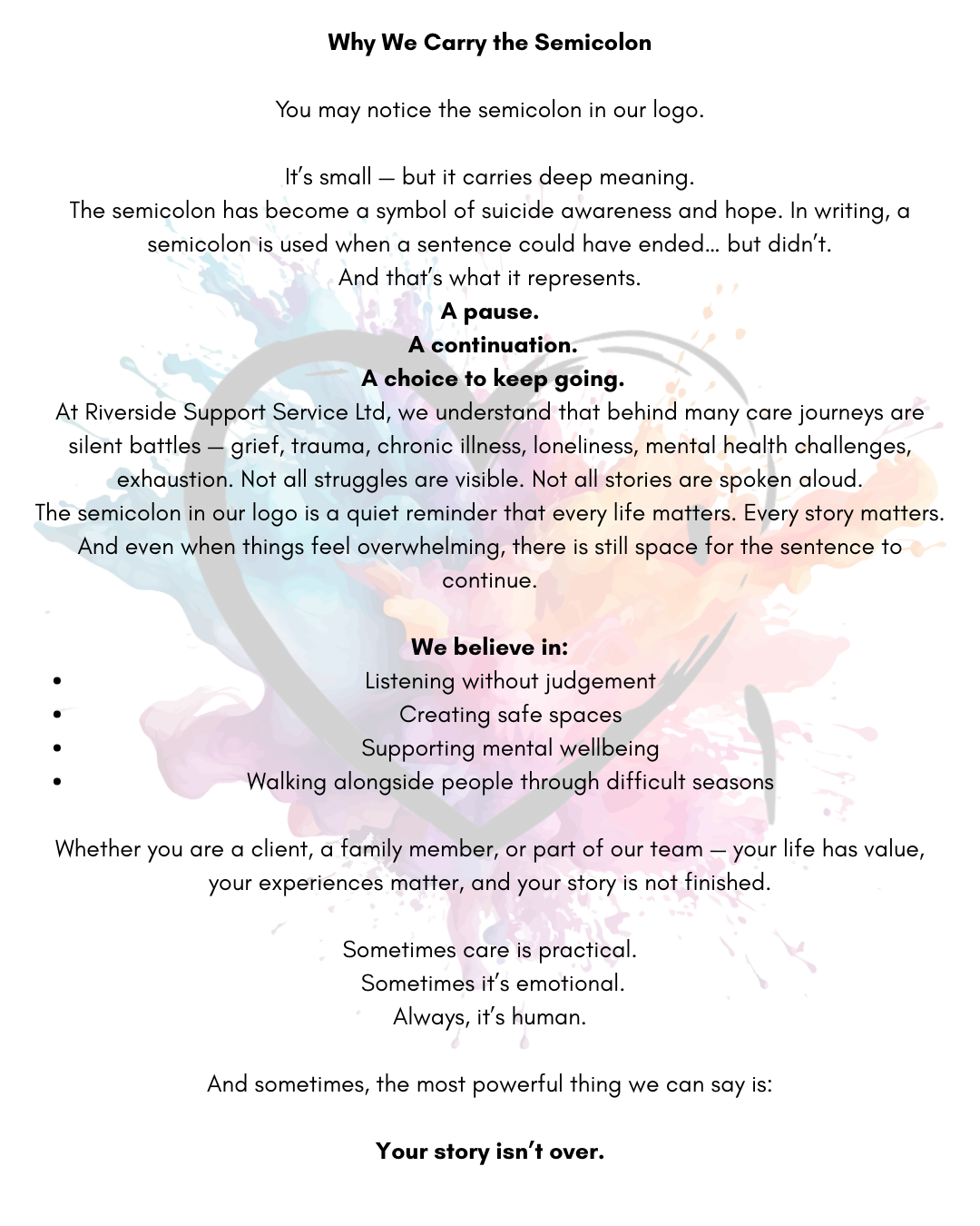 Our pride lies in the holistic support we offer, ensuring that everyone we work with feels valued, heard, and cared for.
